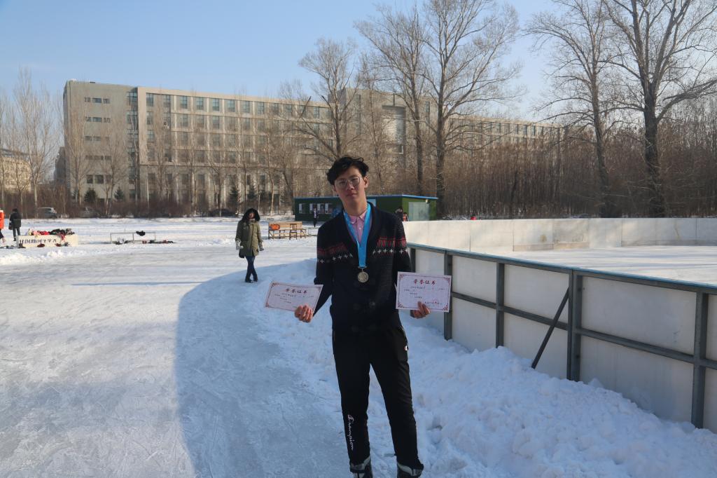 滑冰比赛为期半天,男子300米、500米和1000米男女混合接力比赛均有仪电学院运动员参加。有的运动员提前一个小时就来到滑冰场适应场地,在领队的带领下有序领取冰刀上场热身,为比赛做好充足的准备,以饱满的热情投入到比赛当中。上午10:00运动员集合完毕,进入场地内检录,随后各个比赛项目依次进行。发令枪响,比赛正式开始,选手们奋勇争先,向前加速抢得有利位置。选手们竞争激烈,脚下如同生了风一般驰骋在赛道上。接力比赛考验了团队的协作,每名运动员都为了整个团队而竭尽全力。肖淞文同学凭借出色的发挥获得了男子500米银牌、300米第五名的好成绩,仪电学院代表队也取得了集体项目的第五名。