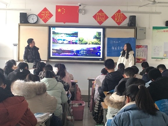 的王博蓉同学以及其他成员依次上台介绍本专业的详细信息,对于高三学子而言,这是一次与大学专业的近距离接触。随后,宣讲团成员又介绍了成人网址