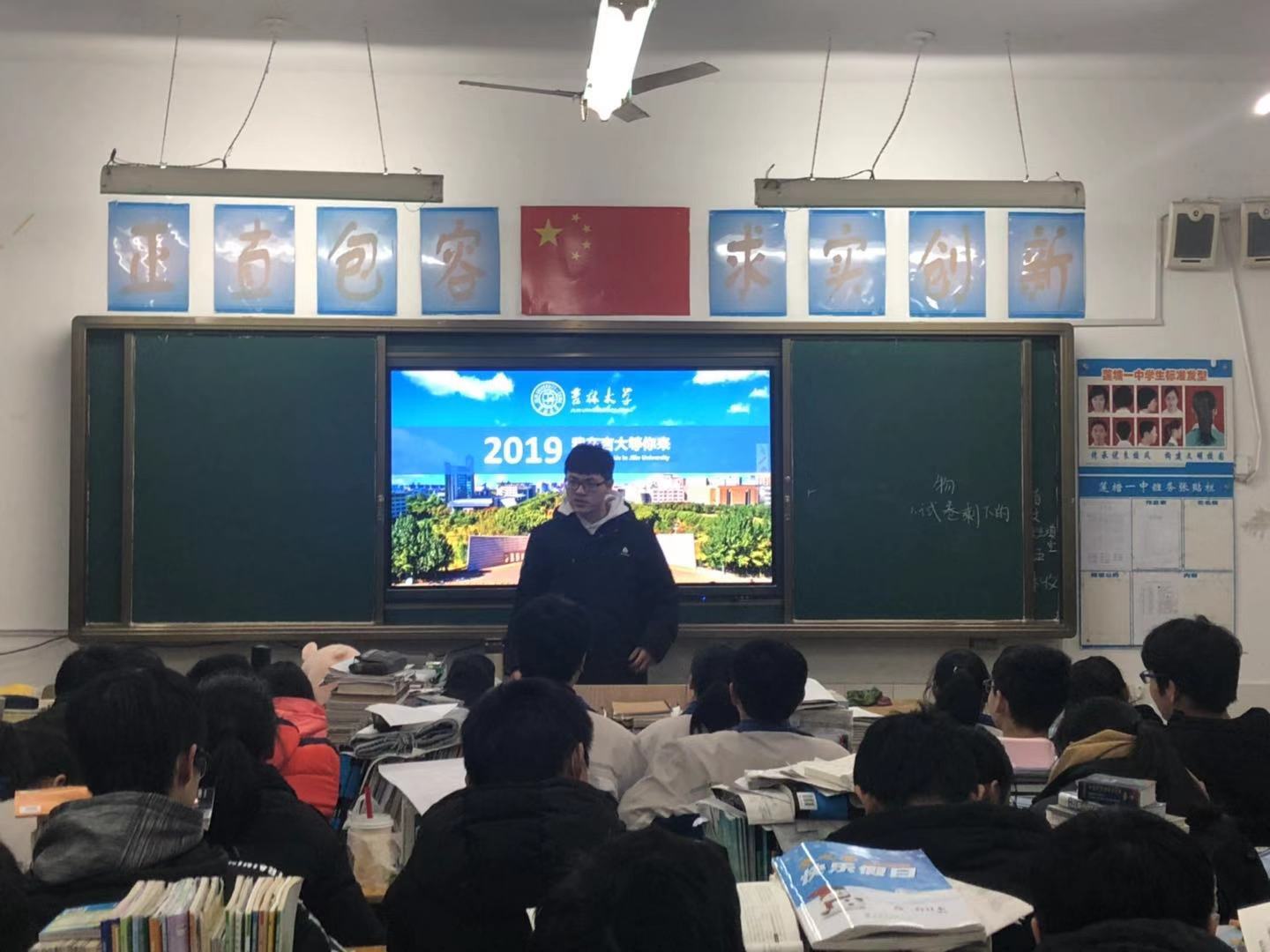 2019年1月21日下午7:00,在征得莲塘第一中学同意的情况下“情系母校莲一行”团队依次进入班级进行宣讲活动。每进入一个班级,学弟学妹们都报以热烈的掌声。团队成员首先向学弟学妹们介绍了自己的身份并表明来意,随后播放了成人网址