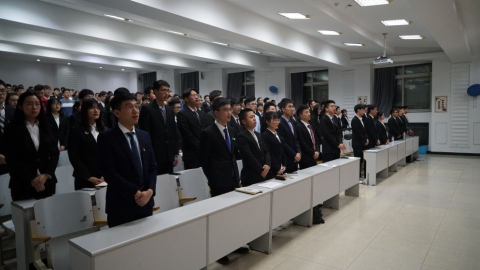 在全体齐唱团歌之后,学生会主席陈亦楠同学对过去一年团学联组织的工作进行总结汇报。之后大会对2018-2019学年寒假社会实践优秀志愿者进行表彰,接下来各部门依次展示部门情况,以幽默风趣的语言带动气氛,鼓励大家积极报名,现场气氛活跃。随后学生会主席陈亦楠同学发言,在发言中他表达了对2018级新生寄予的厚望。最后博士生兼职辅导员周琪发言致辞,对本次大会提出了表扬以及肯定,鼓励大家再接再厉,共创佳绩。之后全体成员奏唱校歌。纳新大会秉承“公开、公平、公正”和“择优录用”的原则,对每位报名的同学都进行了细致的考核,同学们回答积极,思维活跃,纳新活动认真、高效地进行,选拔过程井然有序。2018级同学积极参与,纳新现场十分火爆,参加面试的同学准备充分,对答如流,大方得体,纳新大会取得成功。