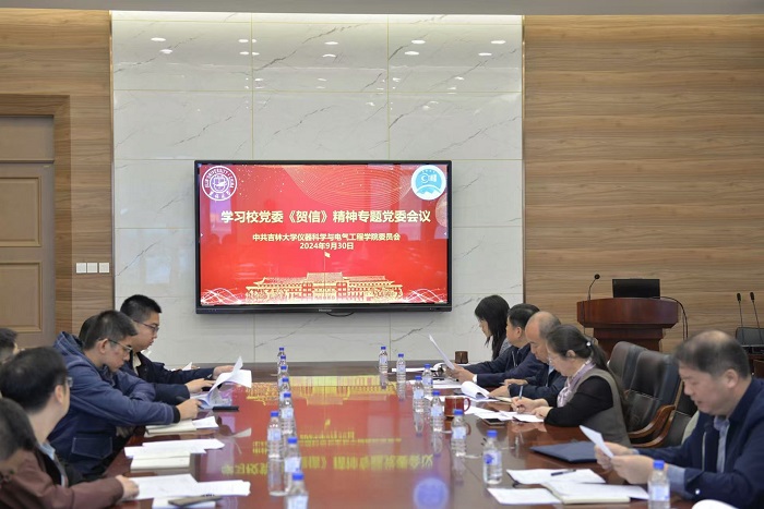 一号”卫星成功发射的《贺信》精神。学院领导班子成员、党委委员、纪委委员、党支部书记参加会议,会议由学院党委书记邱增凯主持。
