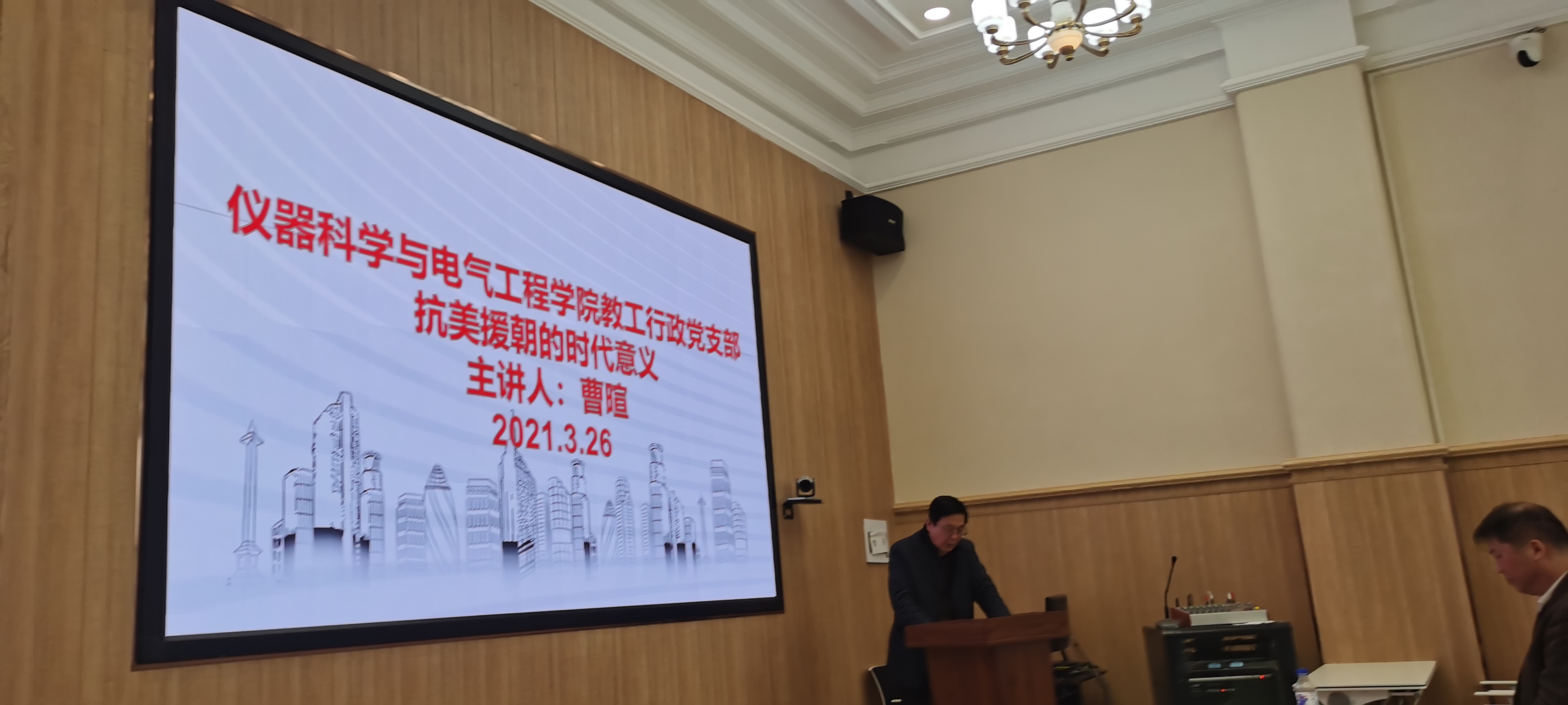 仪电学院教工行政党支部在地质宫208开展“抗美援朝的时代意义”主题党日活动,会议由学院教工行政党支部书记边江主持,学院党委书记邱增凯与支部成员参加会议。