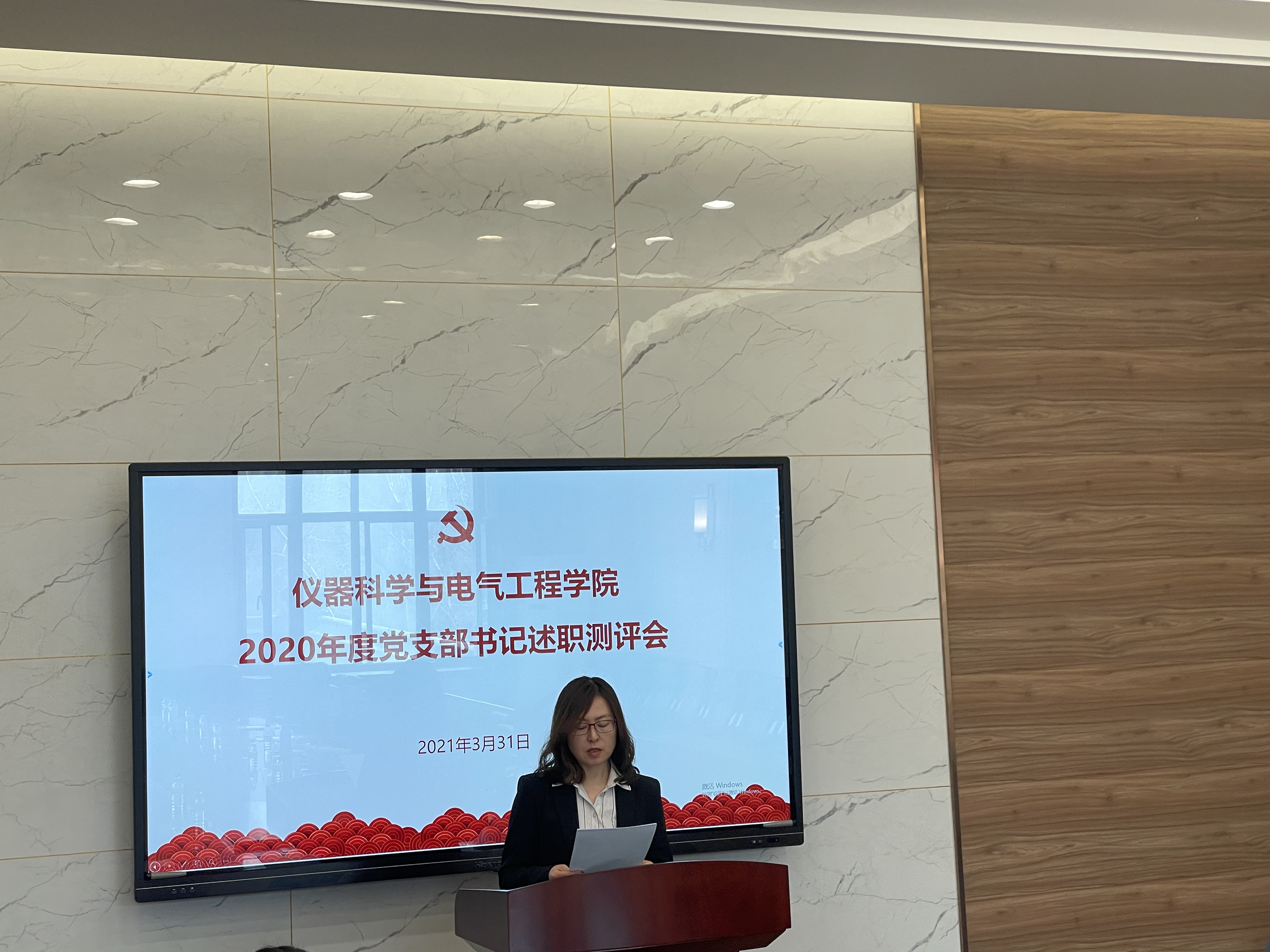 在述职汇报工作结束后,党委书记邱增凯对2021年党支部工作提出三点希望,一是要以学院党建特色工作“共产党员先锋工程”为载体,继续推进“两学一做”学习教育常态化制度化;二是要立足岗位,将党建工作与业务工作相结合,相互促进,共同提高,既要完成党委要求的规定动作,还要突出各支部的优势,开展支部特色活动,树立党建工作品牌意识;三是要以建党100周年为契机,结合学院党委工作要点要求,以稳中求进的步伐,推动学院的发展。最后他强调,支部书记要坚持党的教育方针,坚持立德树人根本任务,紧紧围绕 “双一流”建设、围绕“三大工程”建设、围绕学院“十四五”规划,不断提升党建工作水平,以优异的工作业绩向建党100周年献礼。