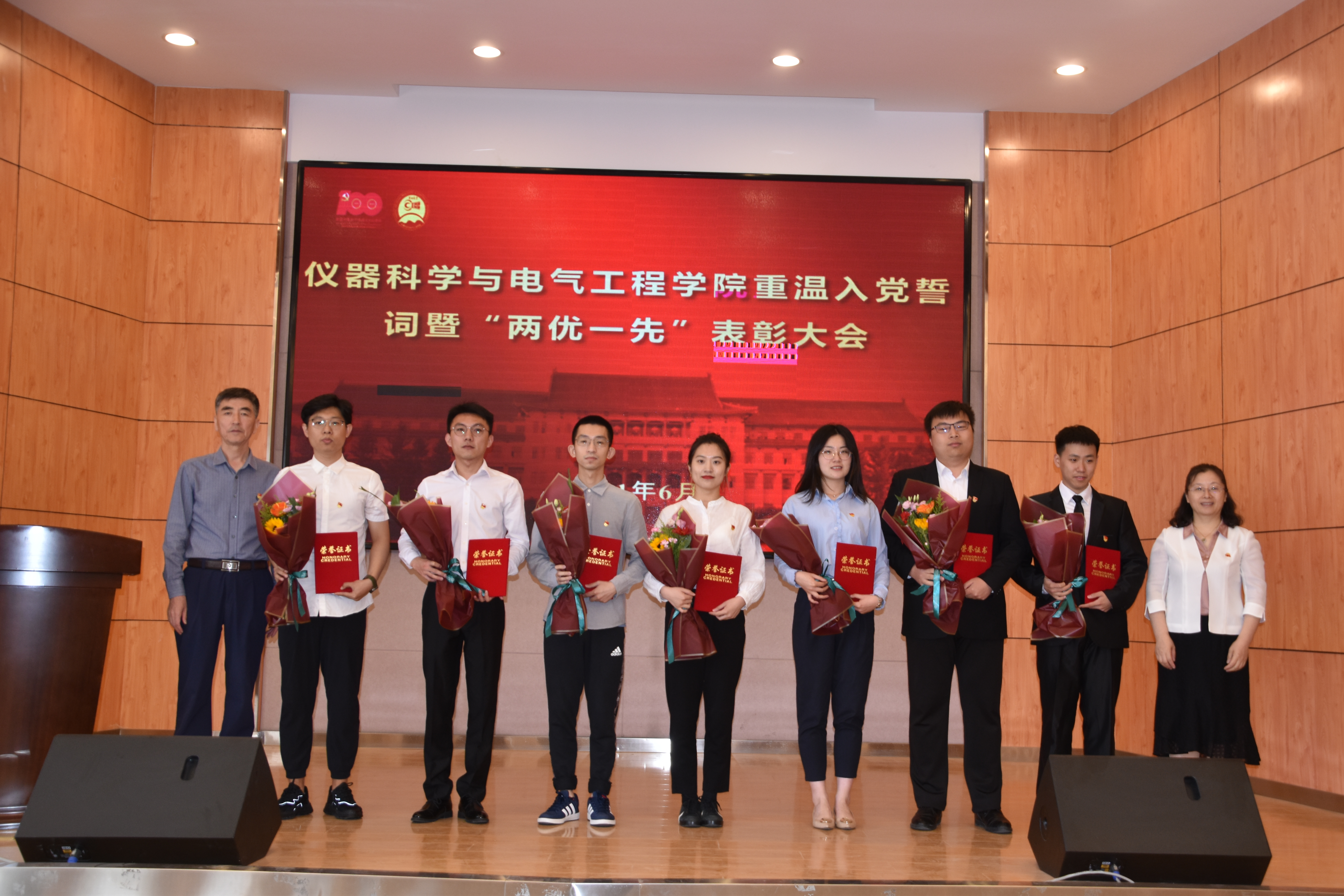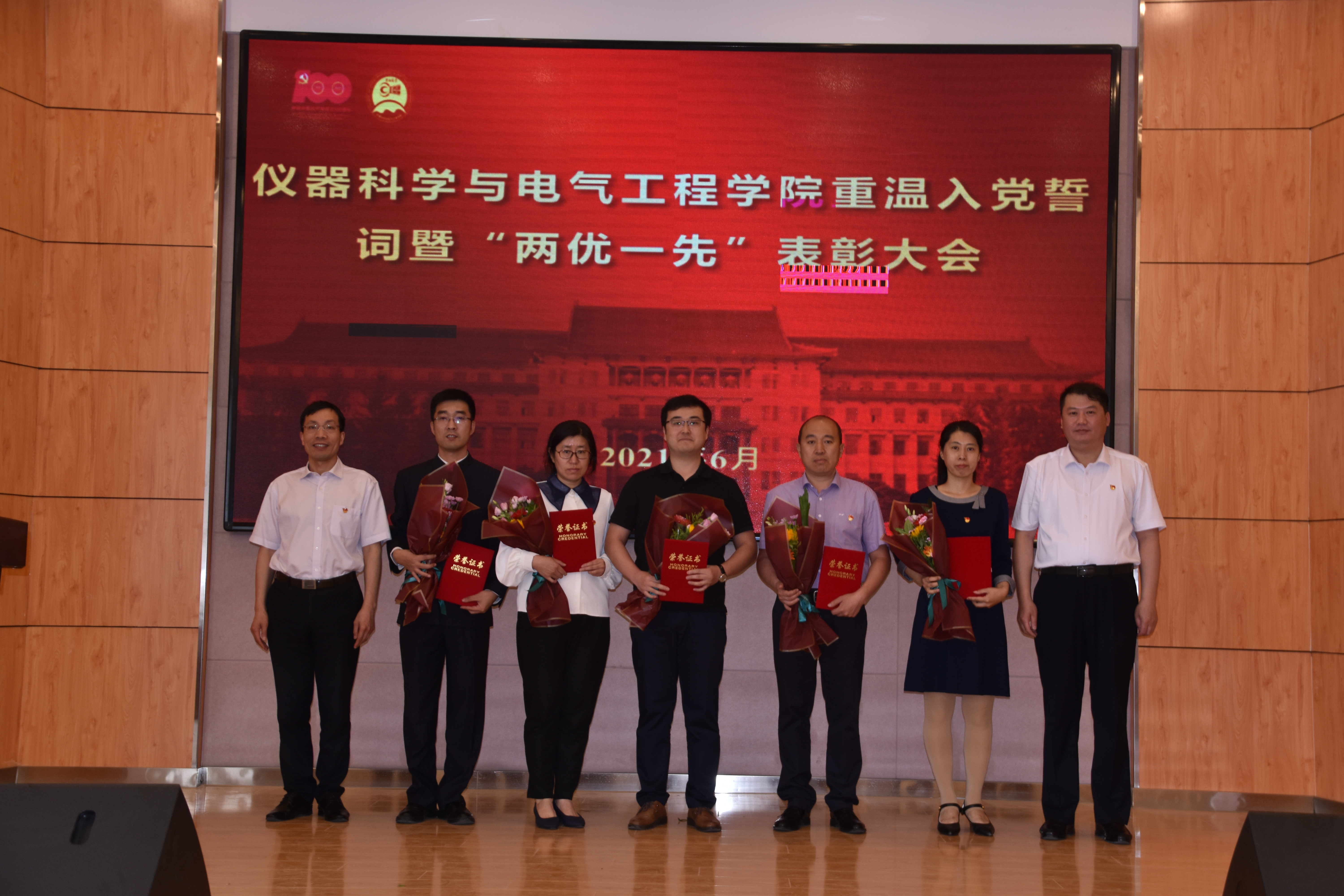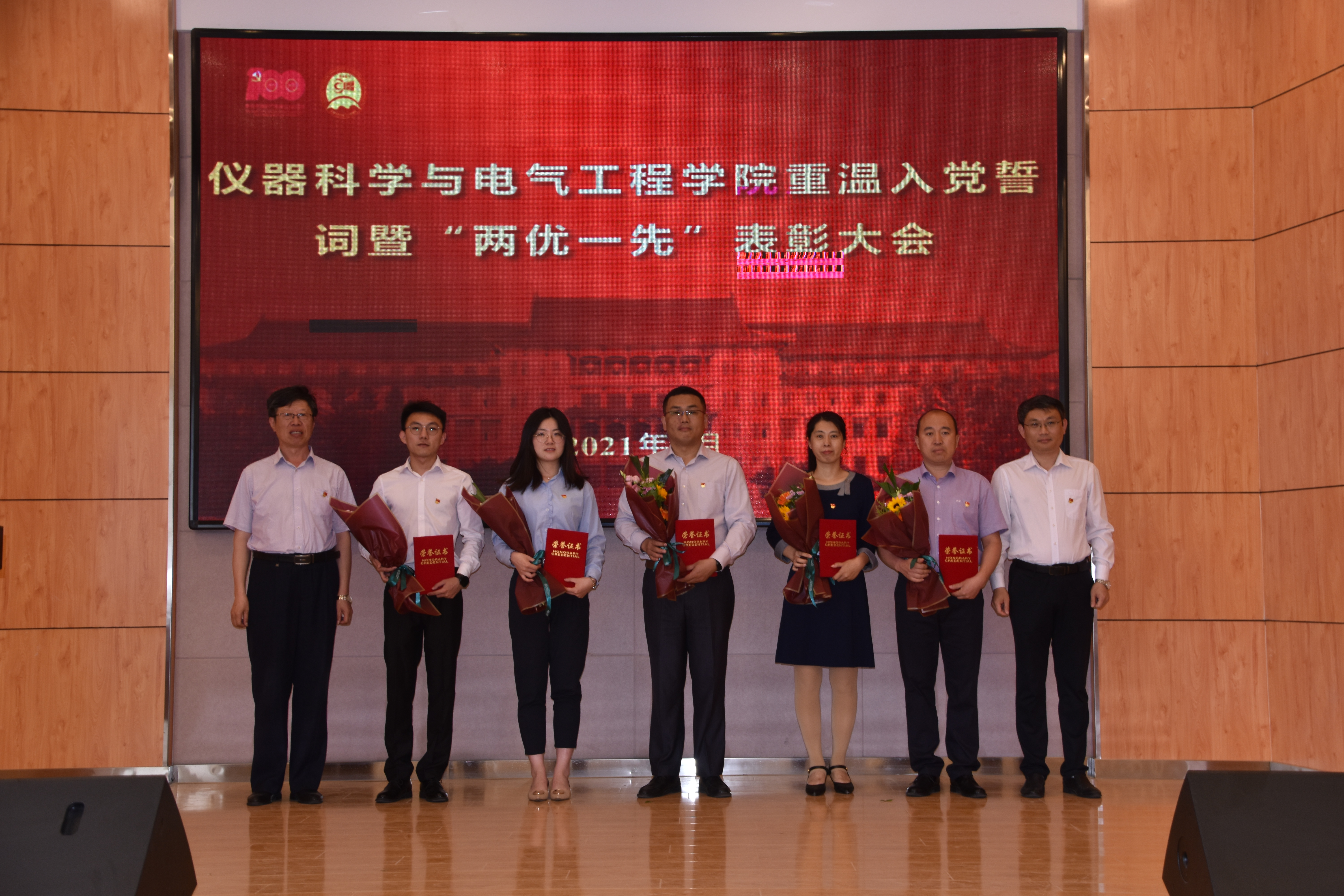 与电气工程学院党委书记邱增凯与党委委员陈祖斌为获得“优秀党务工作者”荣誉称号的6名突出个人颁发证书及鲜花;成人网址