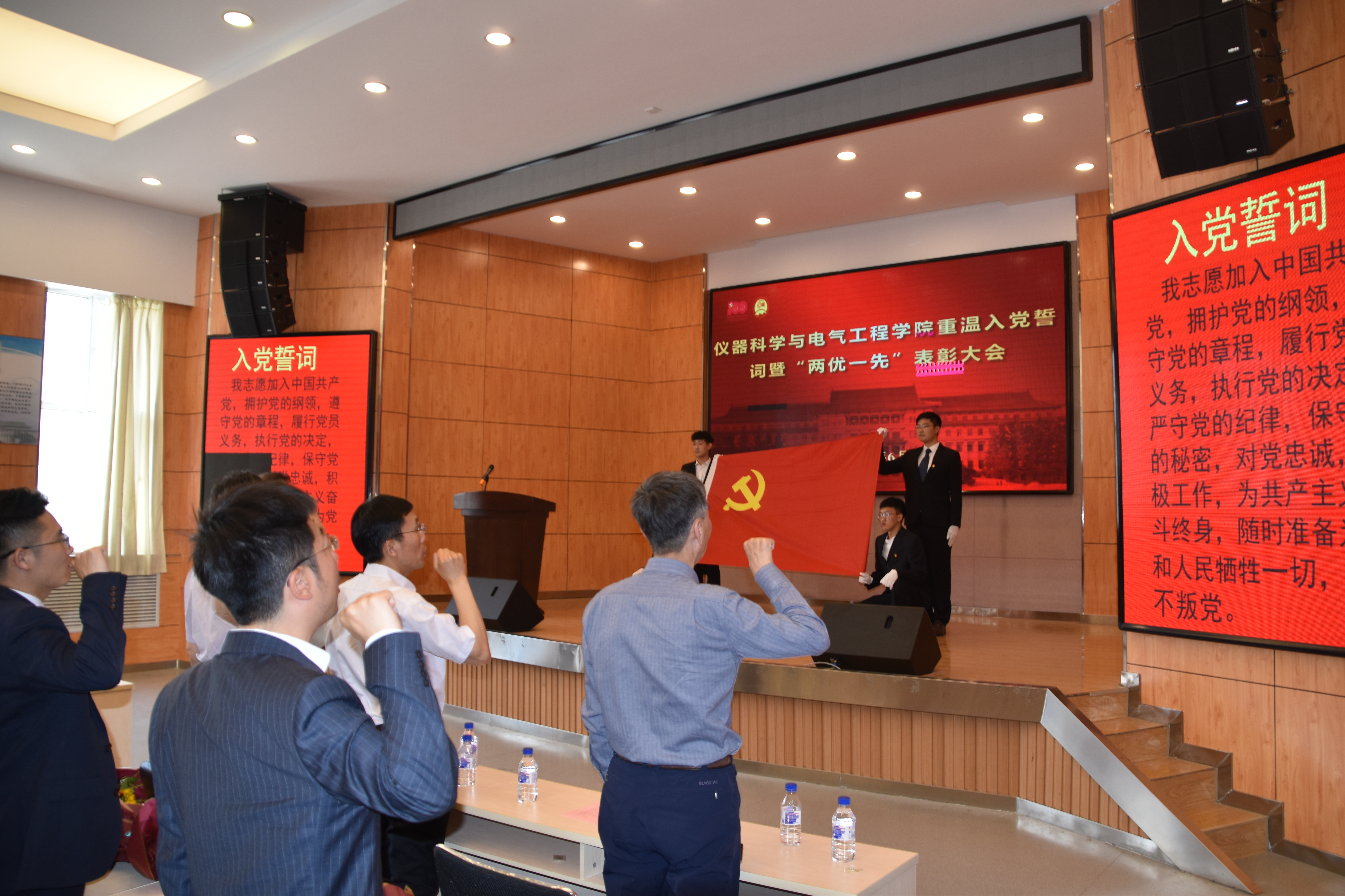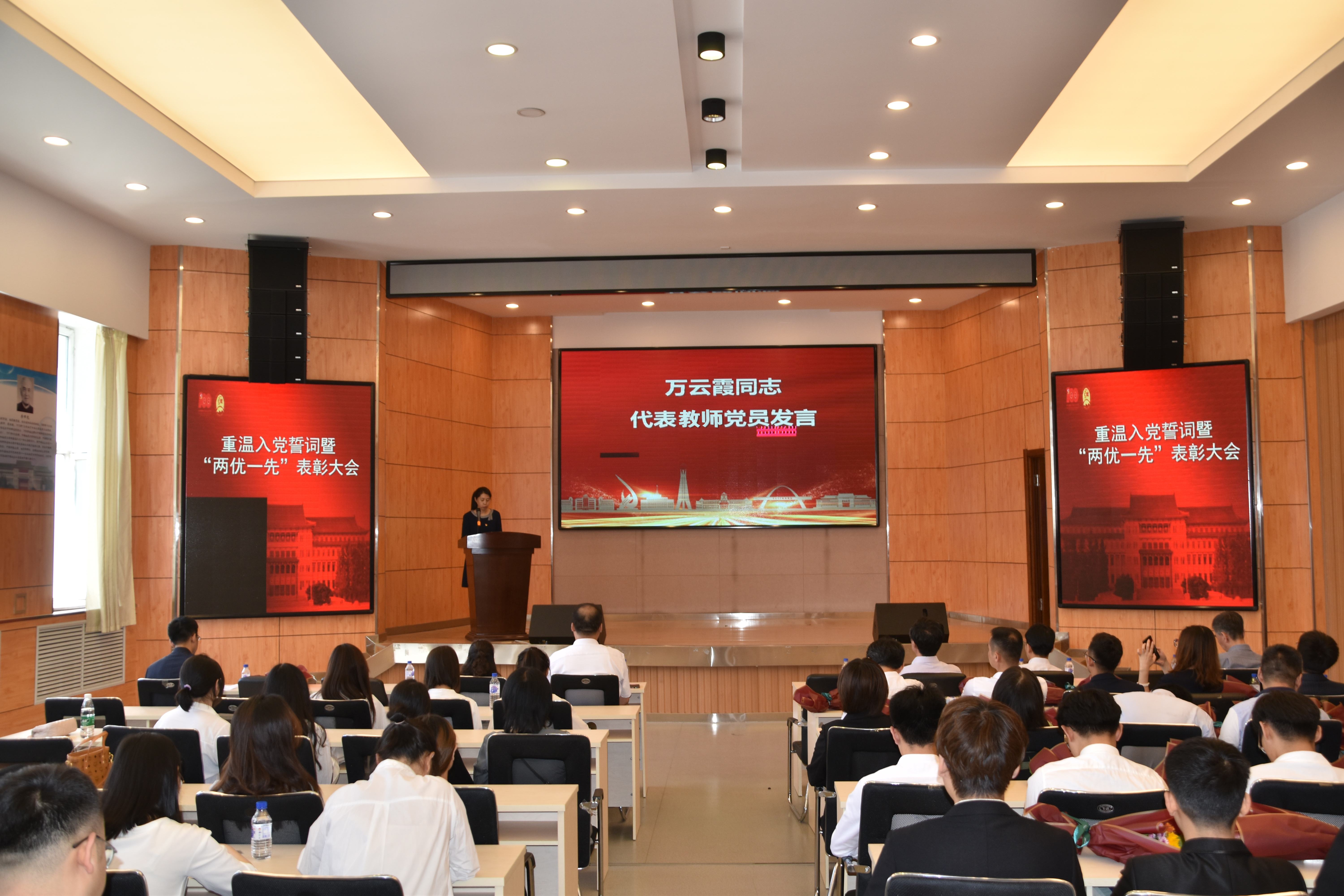 党委于2021年6月22日在朝阳校区图书馆报告厅举行重温入党誓词暨2021年“两优一先”表彰大会,学院全体党员参加大会,会议由成人网址