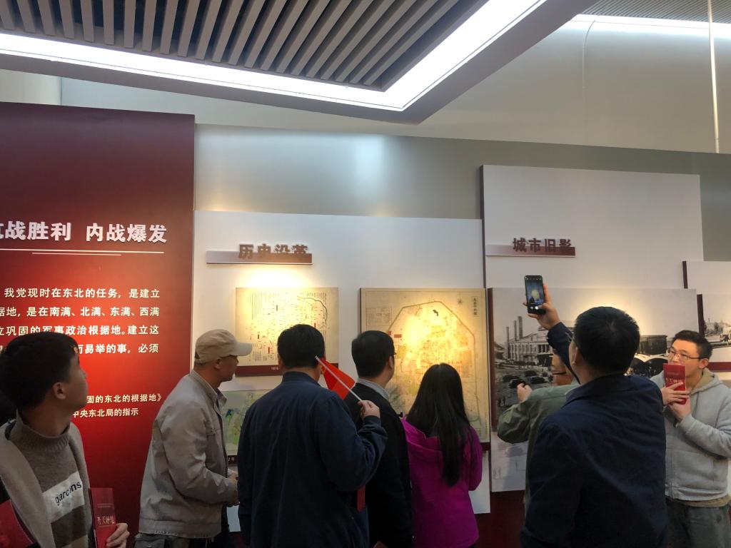 随后,在二楼的展览厅中全体党员共同认真了解了长春的文化史,建国70载,同志们看到了国家的繁荣昌盛,也看到了祖国背后的艰难。