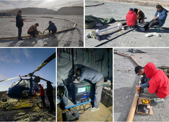 和国家地球物理探测仪器工程技术研究中心,王言章教授团队利用自主研发的直升机航空混场源电磁探测系统,在新疆且末县遥里特什铁铜矿和喀拉米兰河铜金矿两个普查区开展了大比例尺直升机航空瞬变电磁和航空磁法测量及数据处理与解释工作,获得了显著成效。